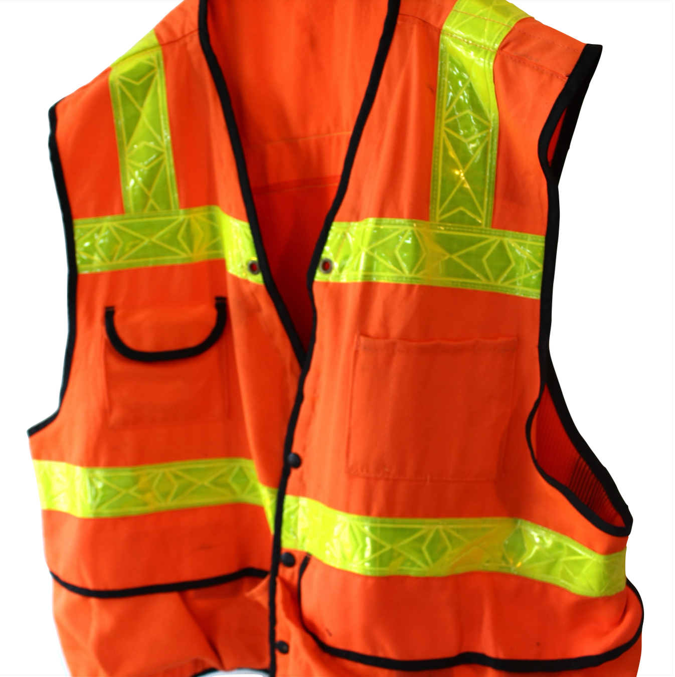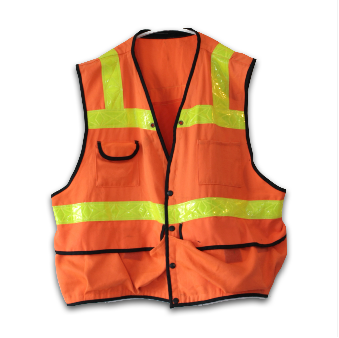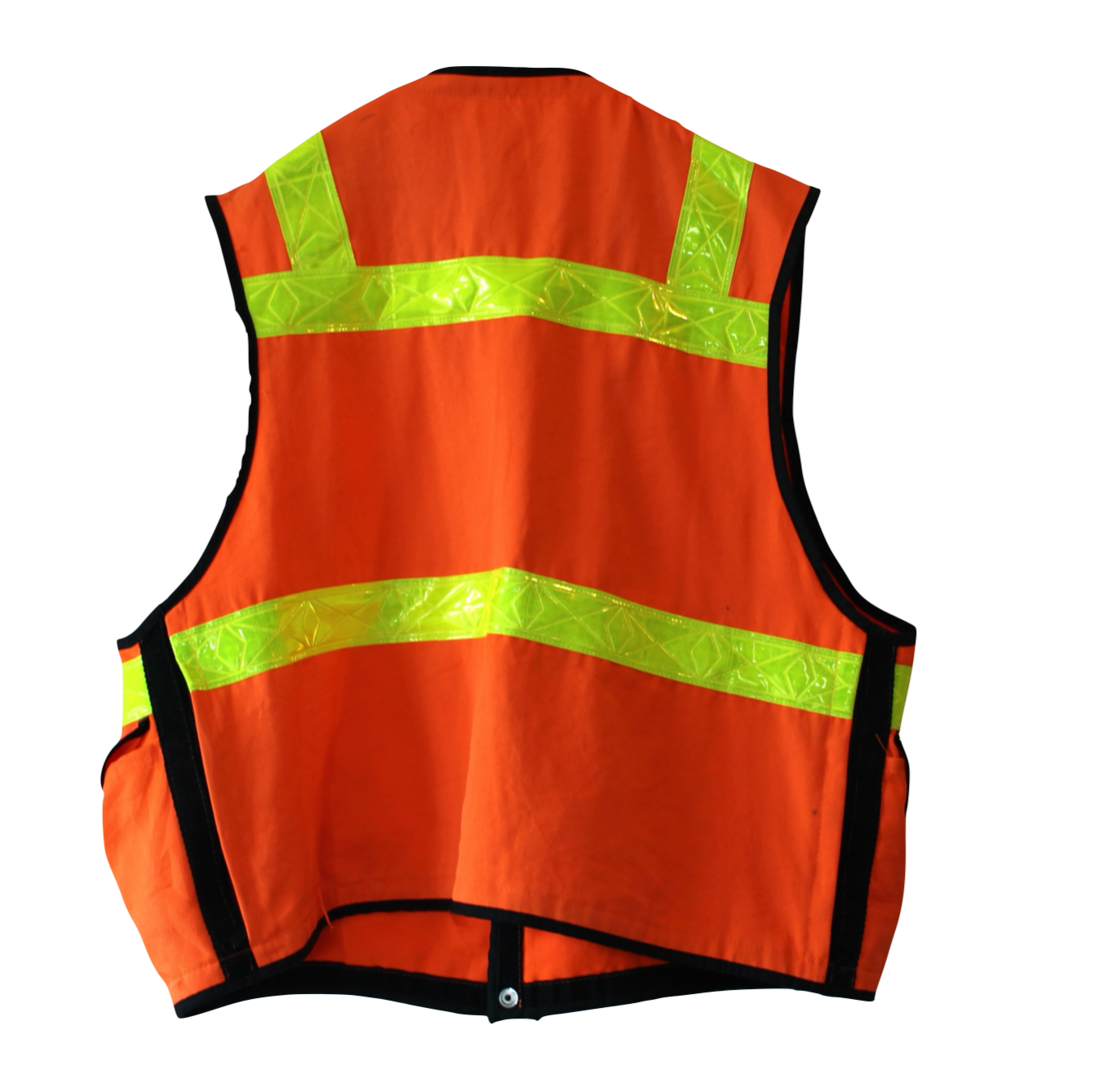 リフレクター付きのセーフティーベスト。ミリタリーや安全対策用での使用頻度が高いがファッションアイテムとしても映えるアイテムである。